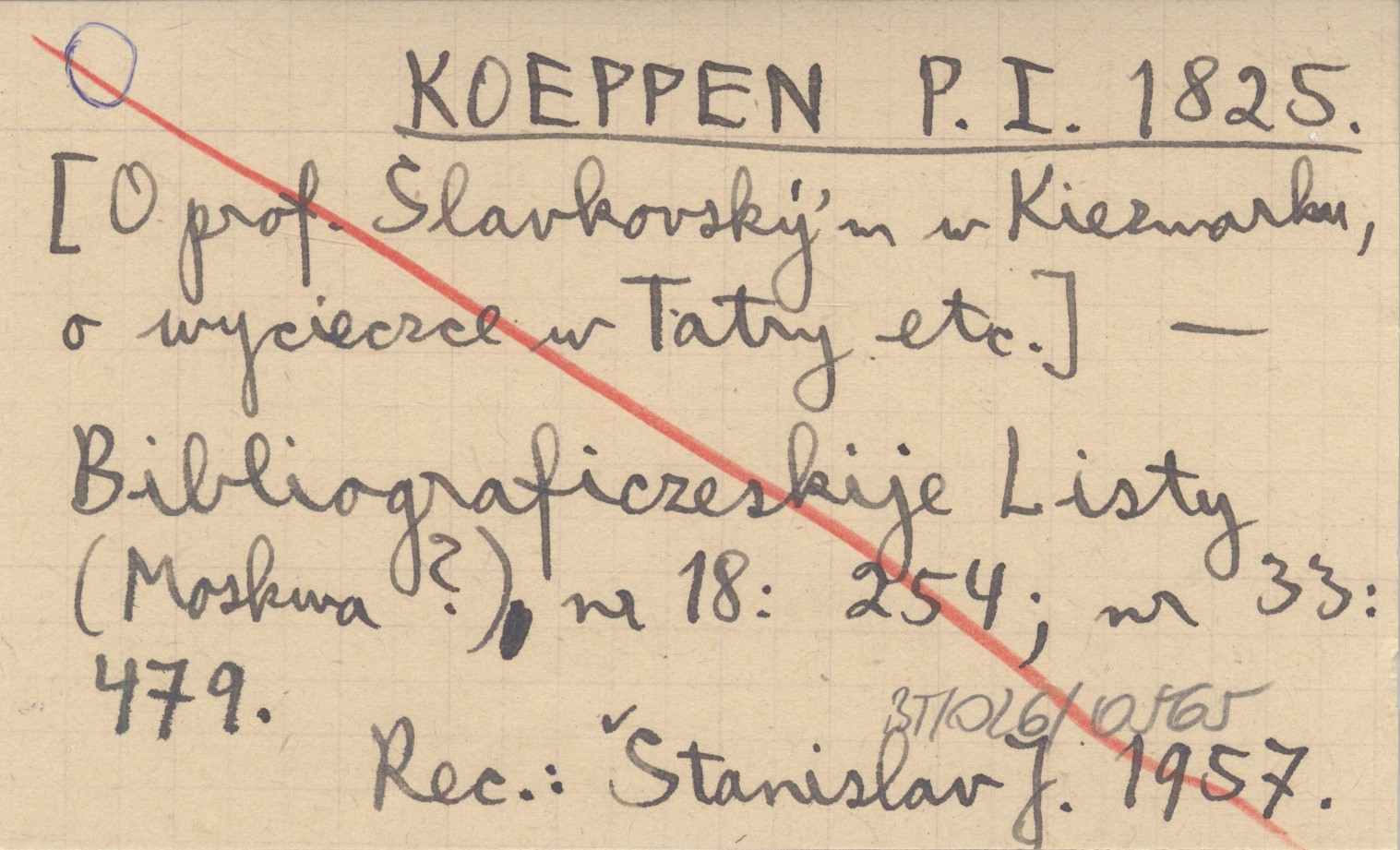 Bibliograficzeskije Listy (Moskwa ?) , Nr 18: 254; nr 33: 479. REC: STANISLAV J. 1957