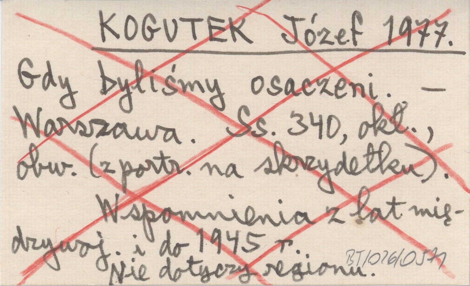 Warszawa , 340 s., okł., obw. Wspomnienia z lat międzywoj. i do 1945 r. Nie dotyczy regionu. obw. z portr. na skrzydełku