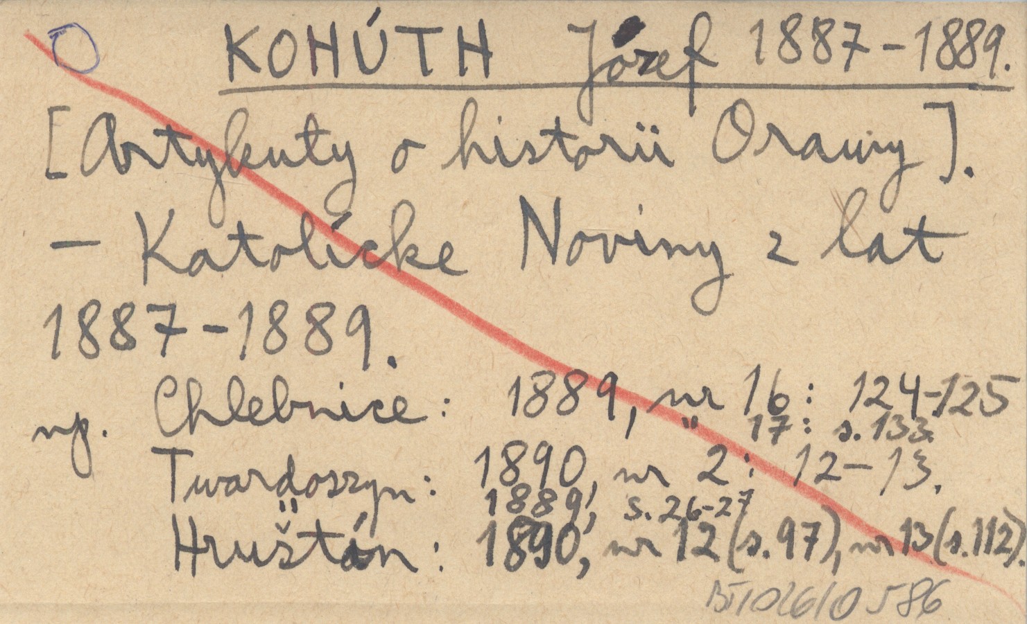 KOHÚTH Jozef 1887-1889 [Artykuły o historii Orawy].