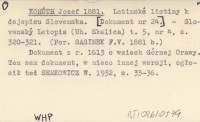 KOHÚTH Jozef 1882 b Listiny vs»ahujúce sa na Oravu. [Dokument nr 89.].