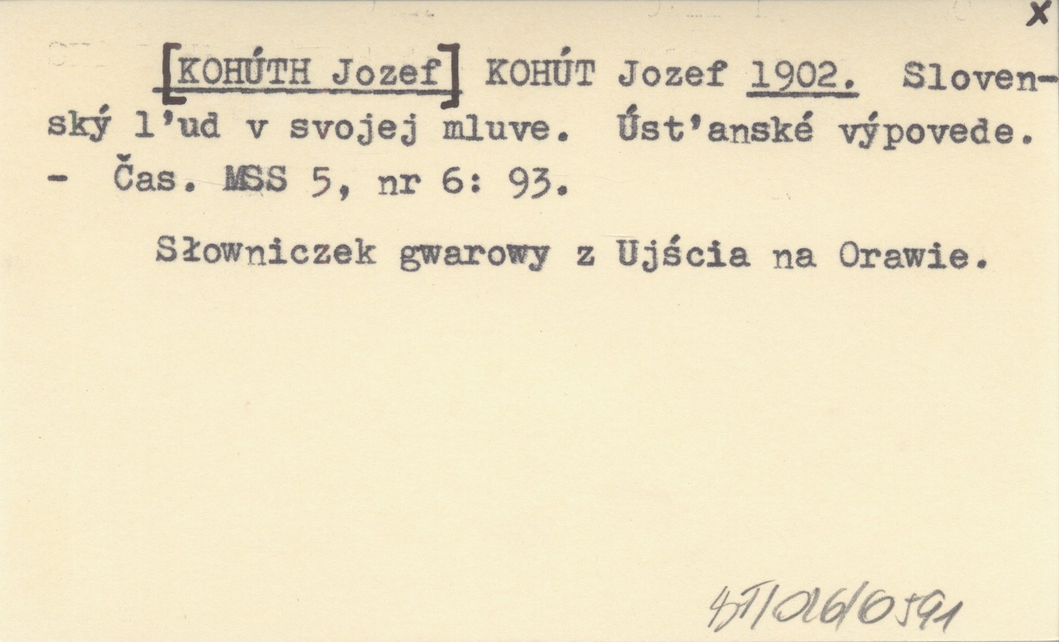 Èas. MSS, 5, nr 6: 93. Słowniczek gwarowy z Uj¶cia na Orawie.