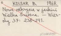 KOISAR B. 1968 Nowe odkrycia w jaskini Wielka Śnieżna.