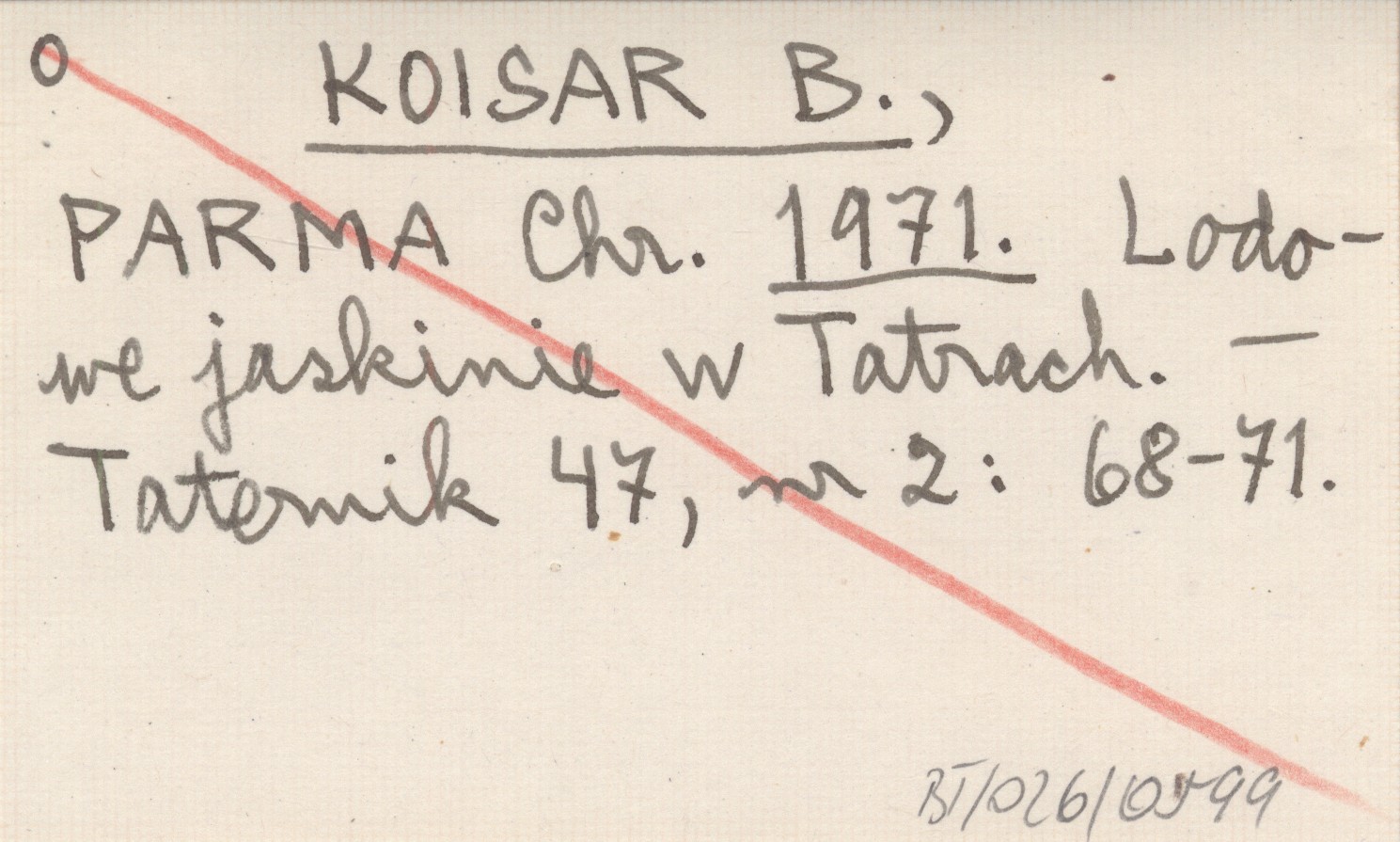 KOISAR B. PARMA, Chr. ; 1971 Lodowe jaskinie w Tatrach.