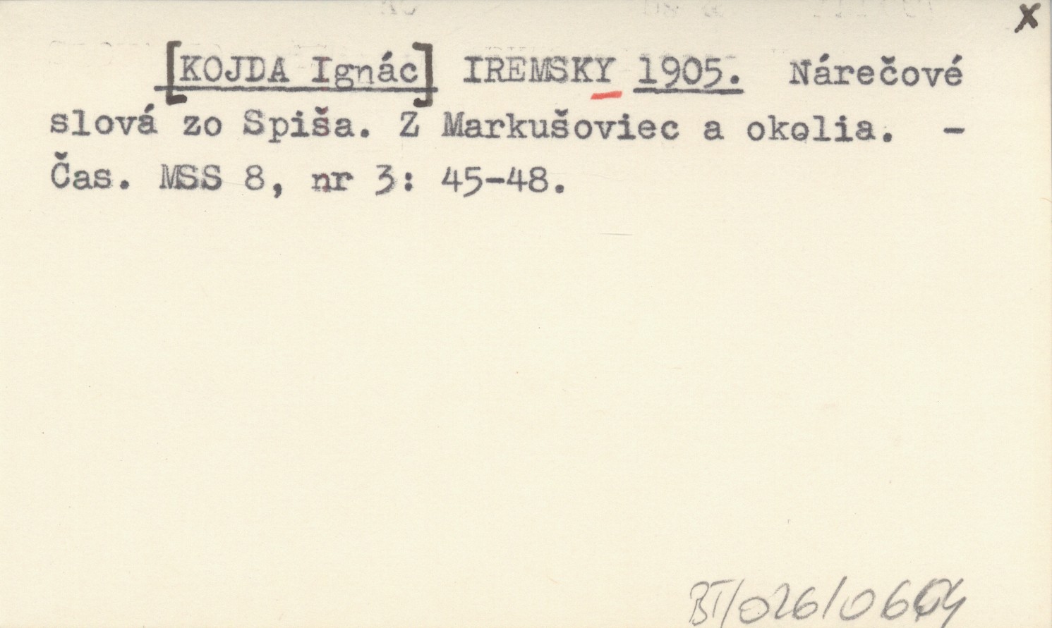 IREMSKY [KOJDA Ignác] 1905 Nárečové slová zo Spiša. Z Markušoviec a okolia.