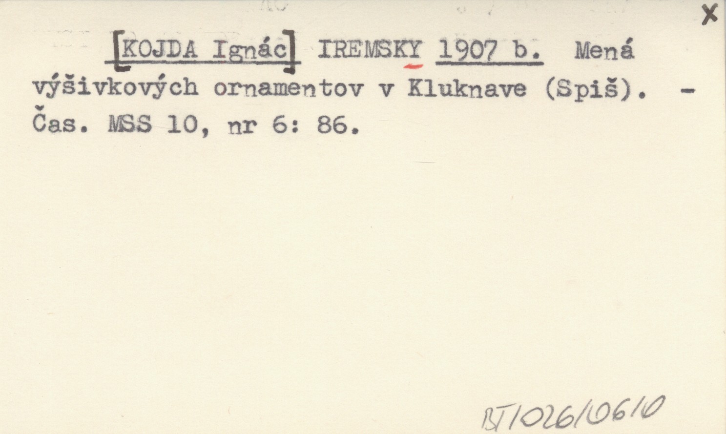 IREMSKY [KOJDA Ignác] 1907 b Mená výšivkových ornamentov v Kluknave (Spiš).