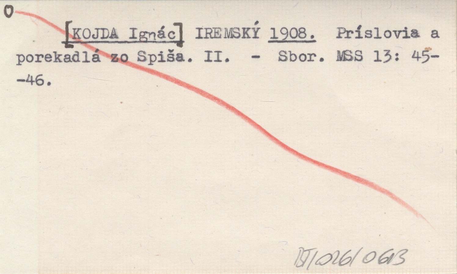 IREMSKÝ [KOJDA Ignác] 1908 Príslovia a porekadlá zo Spiša. II.