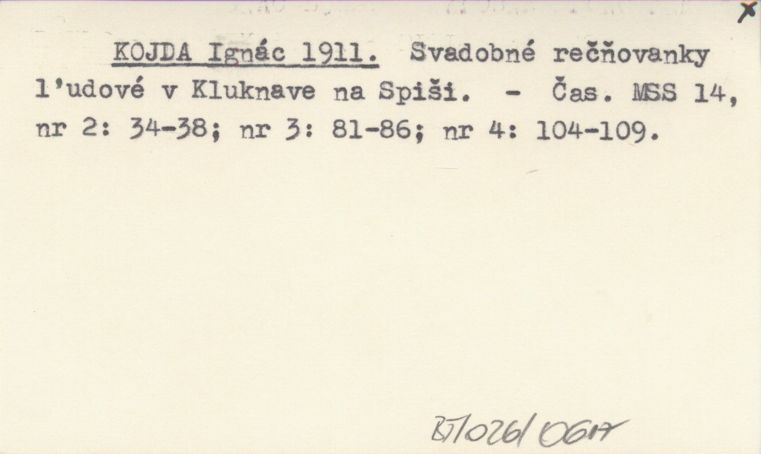 KOJDA Ignác 1911 Svadobné rečňovanky ľudové v Kluknave na Spiši.