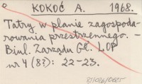 KOKOÆ A. 1968 Tatry w planie zagospodarowania przestrzennego.