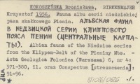 KOKOSZYŃSKA Bronisława BIRKENMAJER, Krzysztof. ; 1956 Fauna albu serii niedzickiej pasa skałkowego Pienin. A”bskaja fauna v nedzickoj serii klippovogo pojasa penin (centra”nye Karpaty). Albian fauna of the Niedzica series from the Klippen-Belt of the Pieniny Mts.
