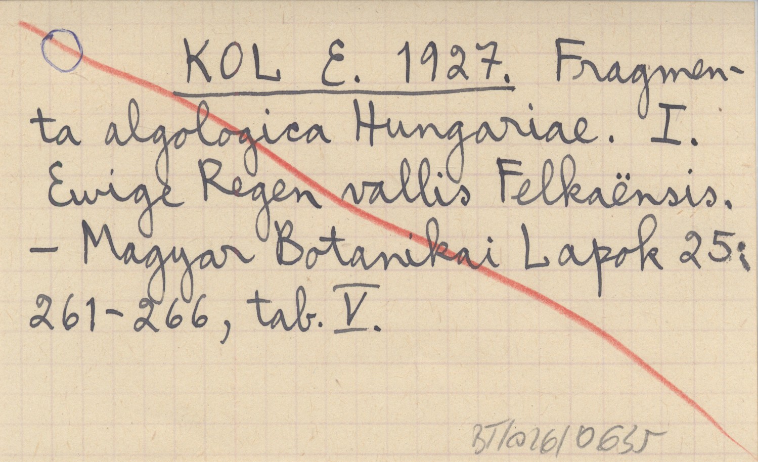 KOL E. 1927 Fragmenta algologica Hungariae. I. Ewige Regen vallis Felkaënsis.