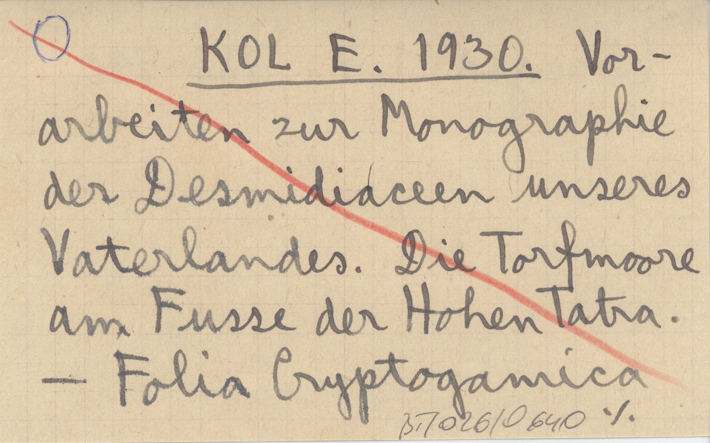 KOL E. 1930 Vorarbeiten zur Monographie der Desmidiaceen unseres Vaterlandes. Die Torfmoore am Fusse der Hohen Tatra.