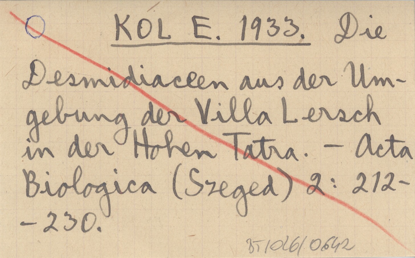 KOL E. 1933 Die Desmidiaceen aus der Umgebung der Villa Lersch in der Hohen Tatra.