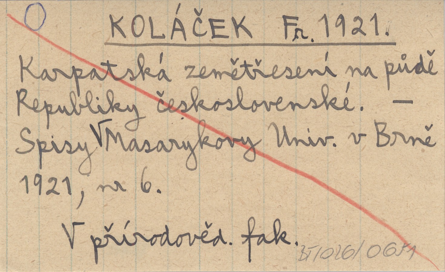 KOLÁČEK Fr. 1921 Karpatská zemětřesení na půdě Republiky československé.