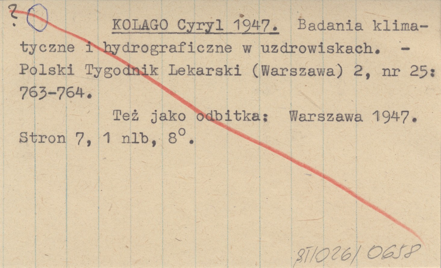 Polski Tygodnik Lekarski (Warszawa) , 2, nr 25: 763-764. Też jako odbitka: Warszawa 1947. 7 s., [1], 8°.