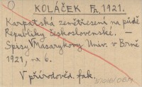 KOLÁČEK Fr. 1921 Karpatská zemětřesení na půdě Republiky československé.