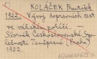 KOLÁČEK František 1922 Vývoj dopravních cest ve vážském poříčí.