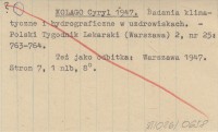 KOLAGO Cyryl 1947 Badania klimatyczne i hydrograficzne w uzdrowiskach.