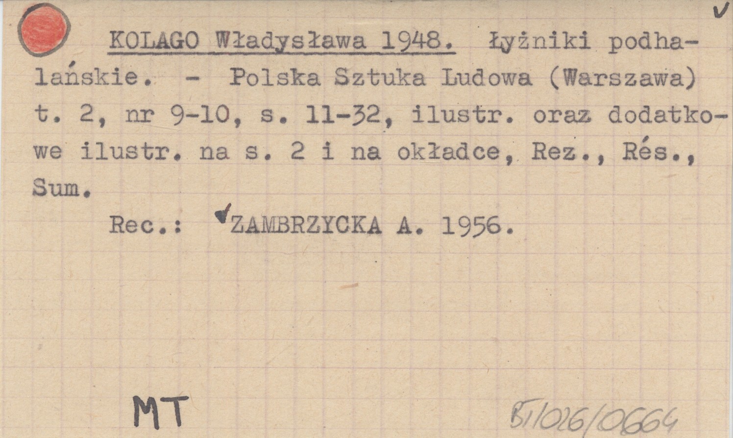 Polska Sztuka Ludowa (Warszawa) , T. 2, nr 9-10: 11-32, il. (s. 2, okł.), Rez., Rés., Sum. REC: ZAMBRZYCKA A. 1956