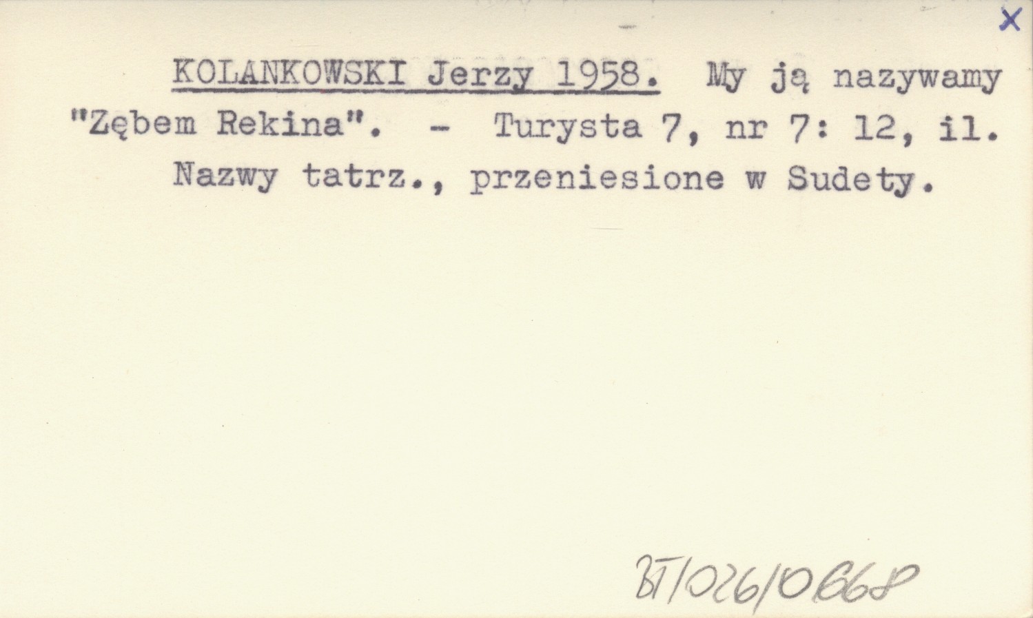 KOLANKOWSKI Jerzy 1958 My ją nazywamy "Zębem Rekina".