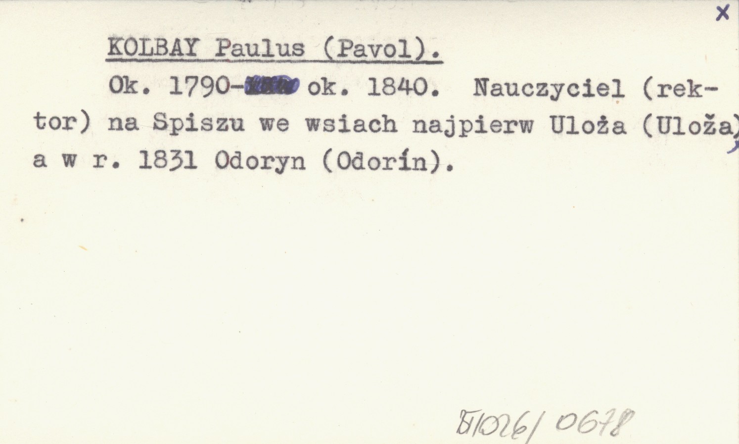 Ok. 1790- ok. 1840. Nauczyciel (rektor) na Spiszu we wsiach najpierw Uloża (Uloža), a w r. 1831 Odoryn (Odorín).