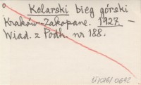 Kolarski bieg górski na szosie Kraków-Zakopane. 1927