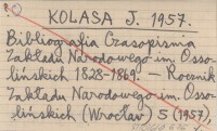 KOLASA J. 1957 Bibliografia Czasopisma Zakładu Narodowego im. Ossolińskich 1828-1869.