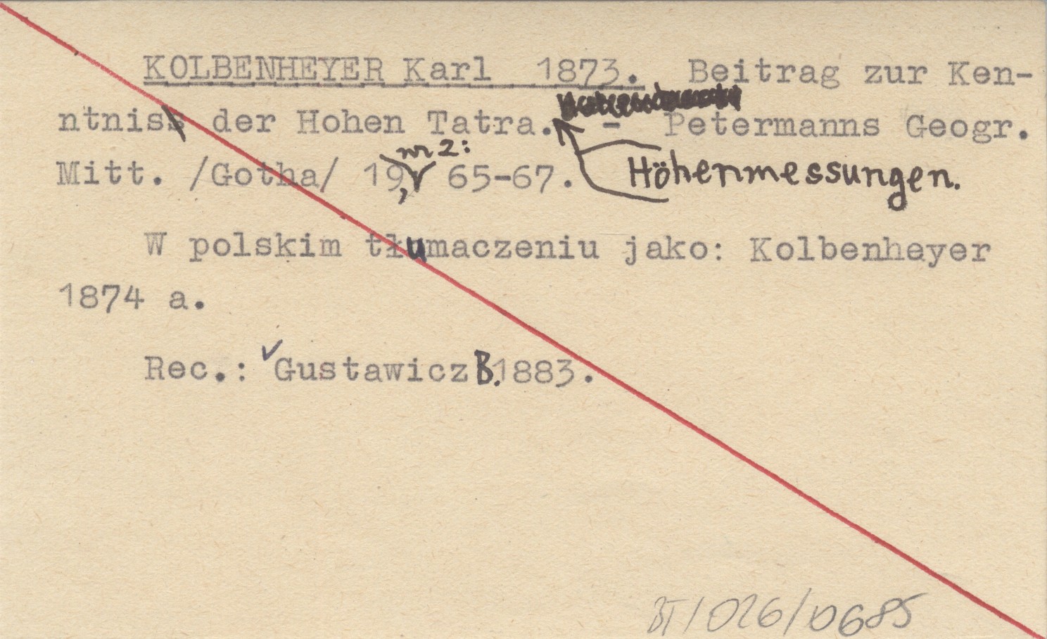 Petermanns Geographische Mitteilungen (Gotha) , 19, nr 2: 65-67. W polskim tłumaczeniu jako: Kolbenheyer 1874 a REC: GUSTAWICZ B. 1883