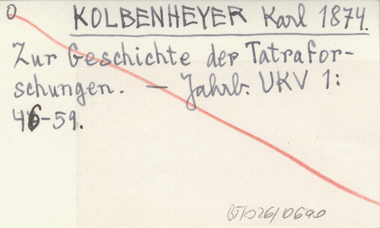 KOLBENHEYER Karl 1874 Zur Geschichte der Tatraforschungen.