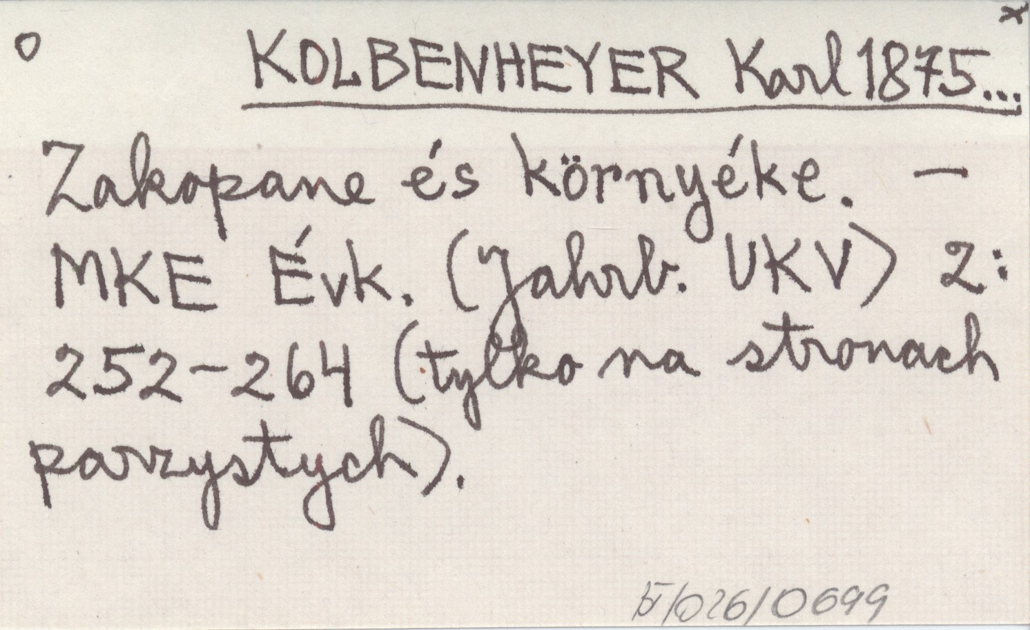 MKE Évk. (Jahrb. UKV), 2: 252-264. tylko na stronach parzystych