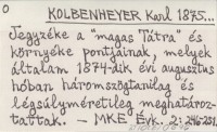 KOLBENHEYER Karl 1875... Jegyzéke a "magas Tátra" és környéke pontjainak, melyek általam 1874-dik évi augusztus hóban háromszögtanilag és légsúlyméretileg meghatároztattak.