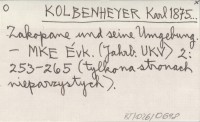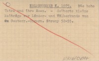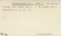 KOLBENHEYER Karl 1880 b Zur Klimatologie der Hohen Tátra.