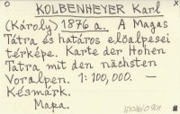 Károly KOLBENHEYER Karl 1876 a A Magas Tátra és határos elöalpesei térképe. Karte der Hohen Tatra mit den nächsten Voralpen. 1:100,000.