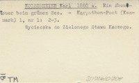 KOLBENHEYER K. 1875 Die hohe Tatra und ihre Seen.
