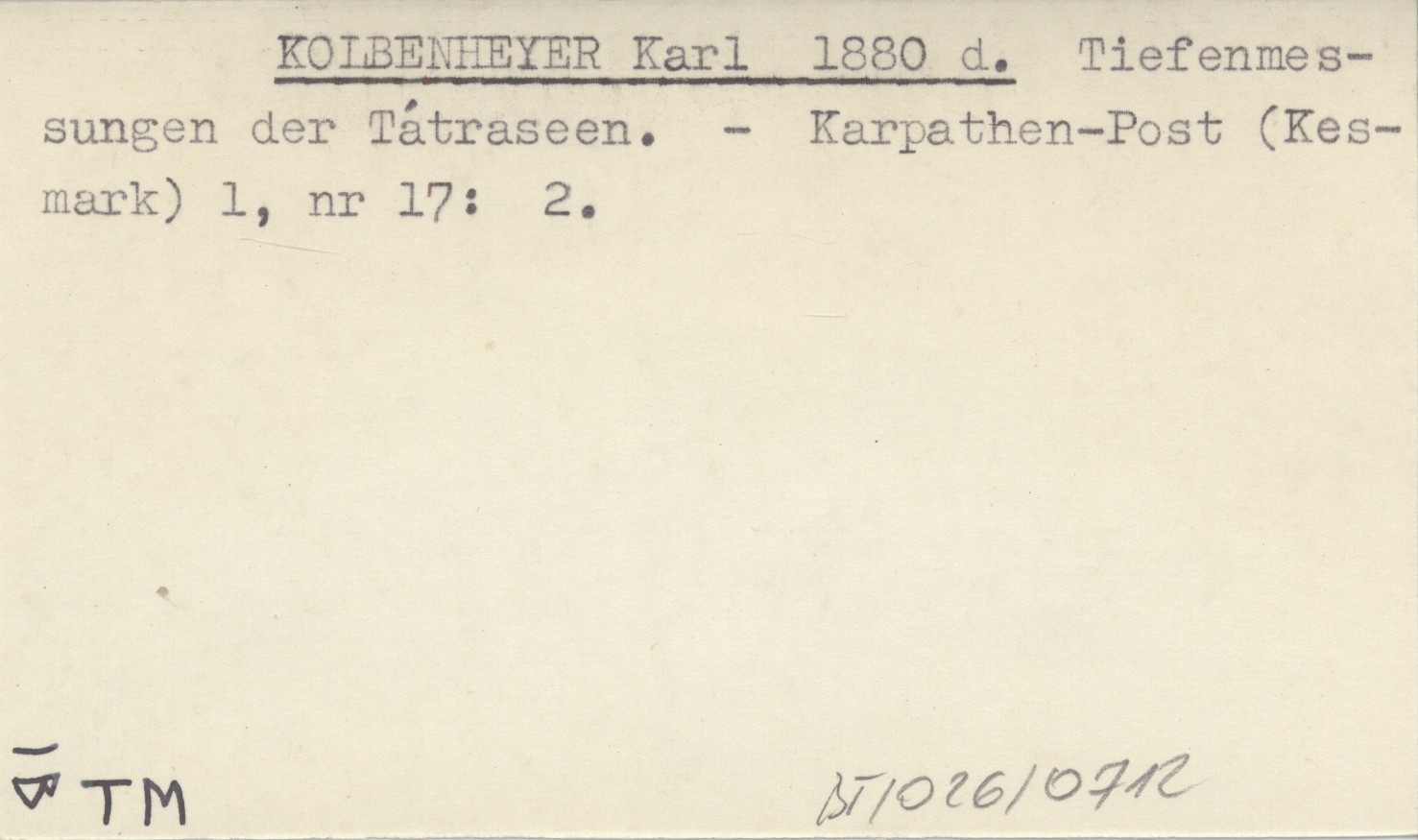 KOLBENHEYER Karl 1880 d Tiefenmessungen der Tátraseen.