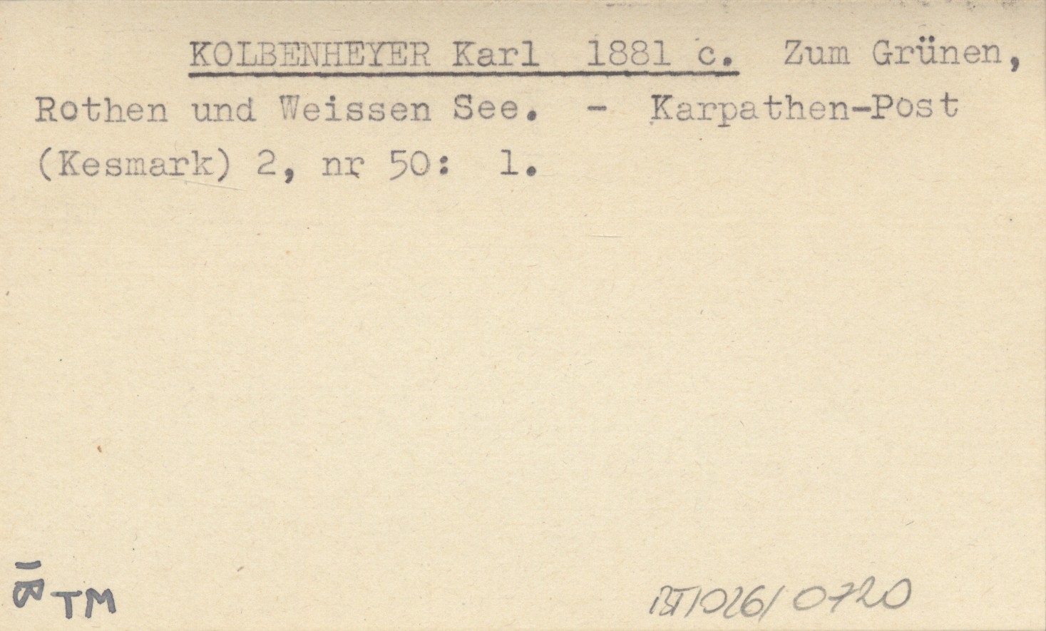 KOLBENHEYER Karl 1881 c Zum Grünen, Rothen und Weissen See.