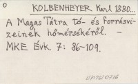 KOLBENHEYER Karl 1880... A Magas Tátra tó- és forrásvizeinek hőmérsékéről.