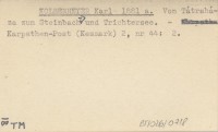 KOLBENHEYER Karl 1881 e In Karpathenvereins-Angelegenheiten.