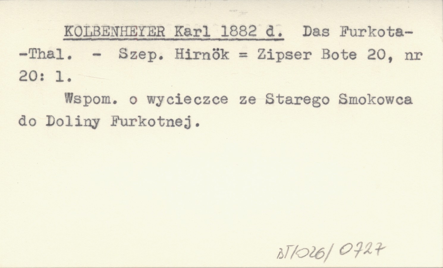 Szepesi Hirnök = Zipser Bote, 20, nr 20: 1. Wspom. o wycieczce ze Starego Smokowca do Doliny Furkotnej.
