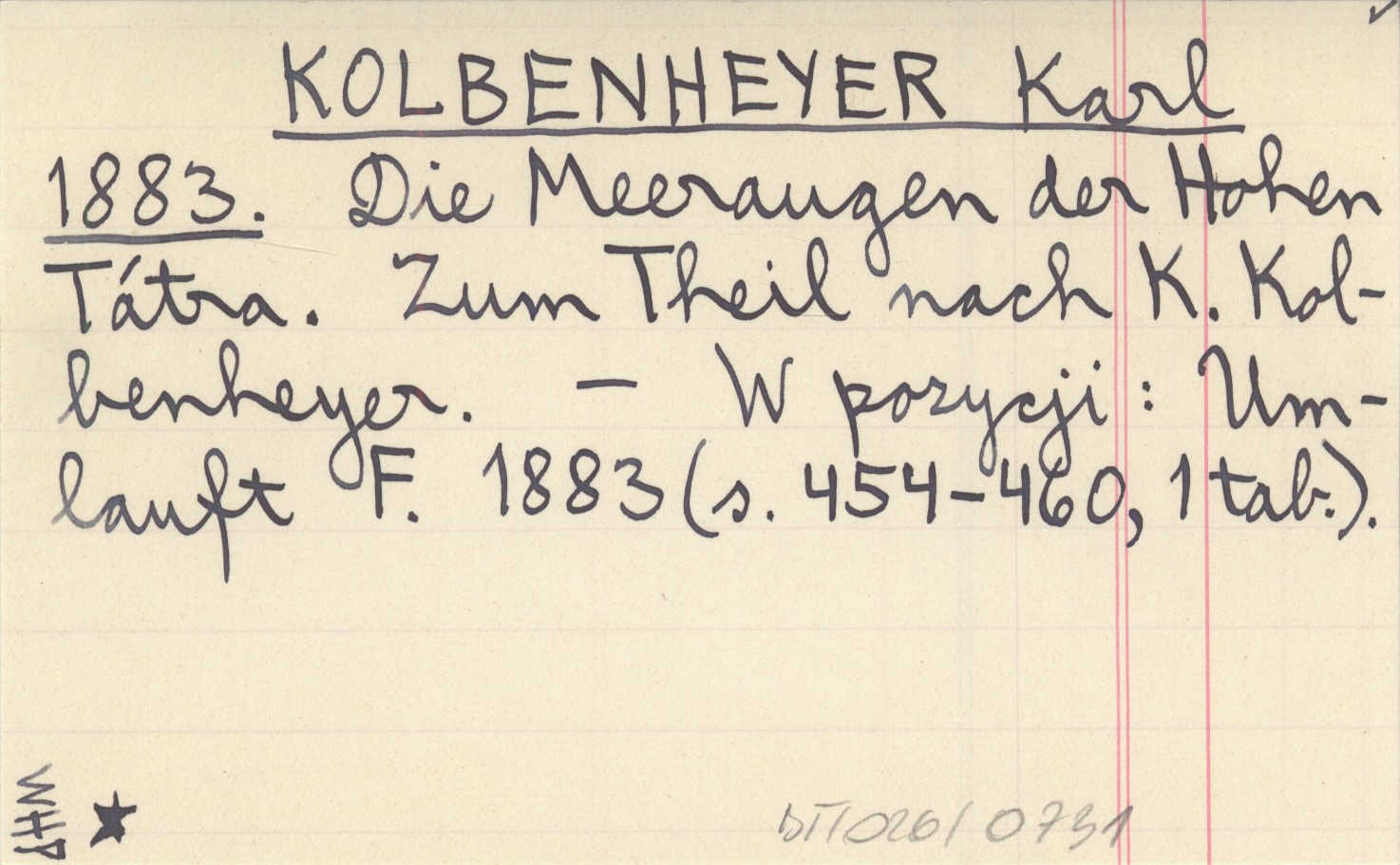 KOLBENHEYER Karl 1883 Die Meeraugen der Hohen Tátra. Zum Theil ach K. Kolbenheyer.
