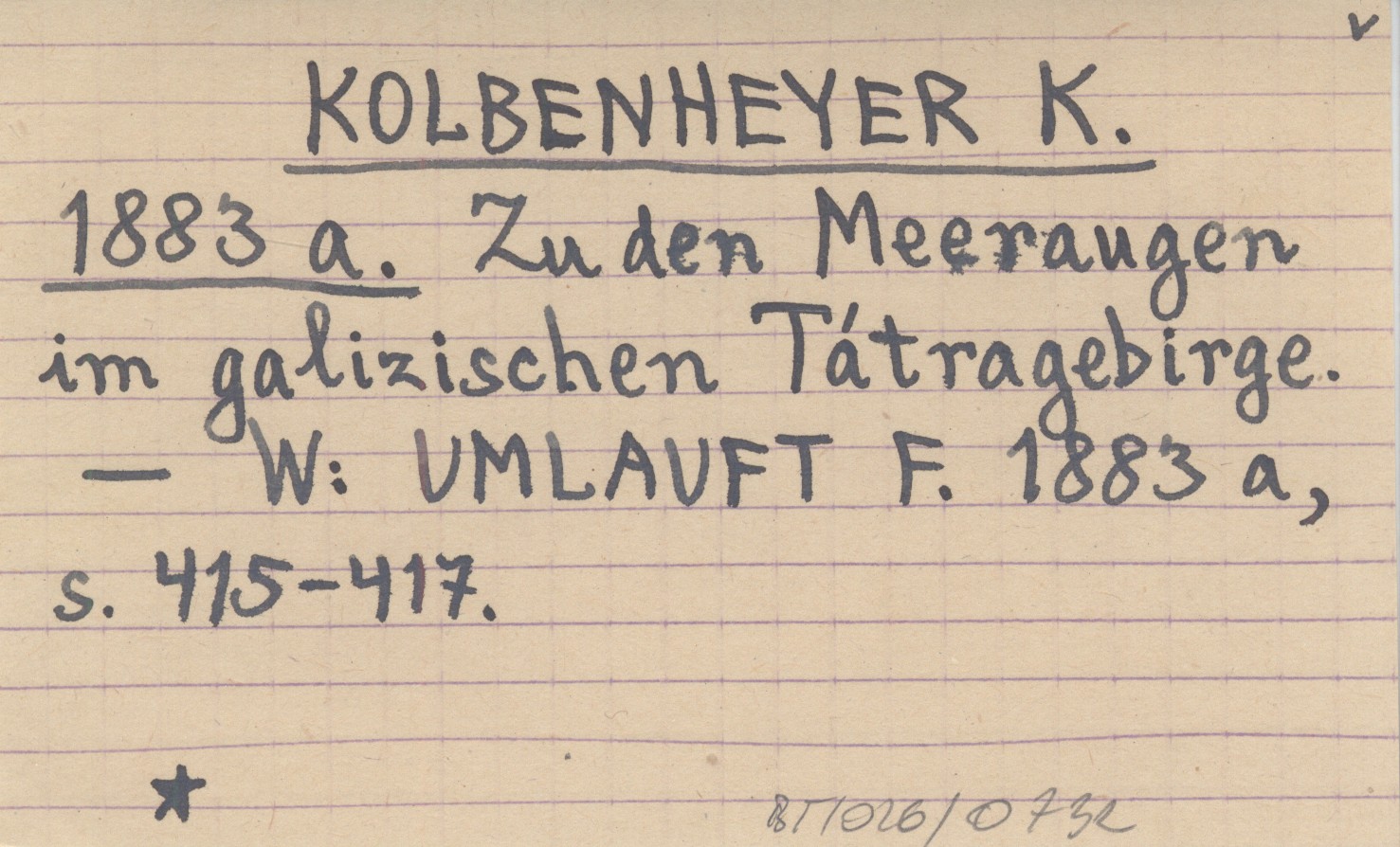 KOLBENHEYER K. 1883 a Zu den Meeraugen im galizischen Tátragebirge.
