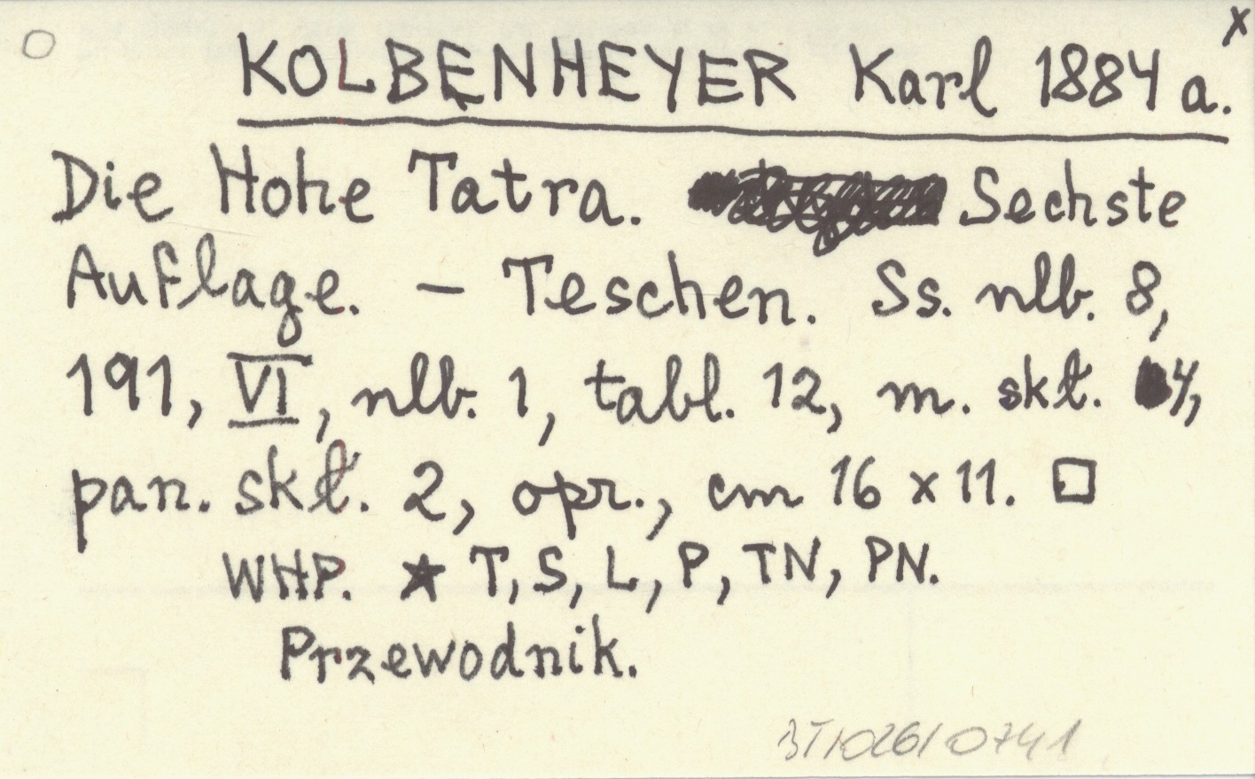 KOLBENHEYER Karl 1884 a Die Hohe Tatra. Sechste Auflage.