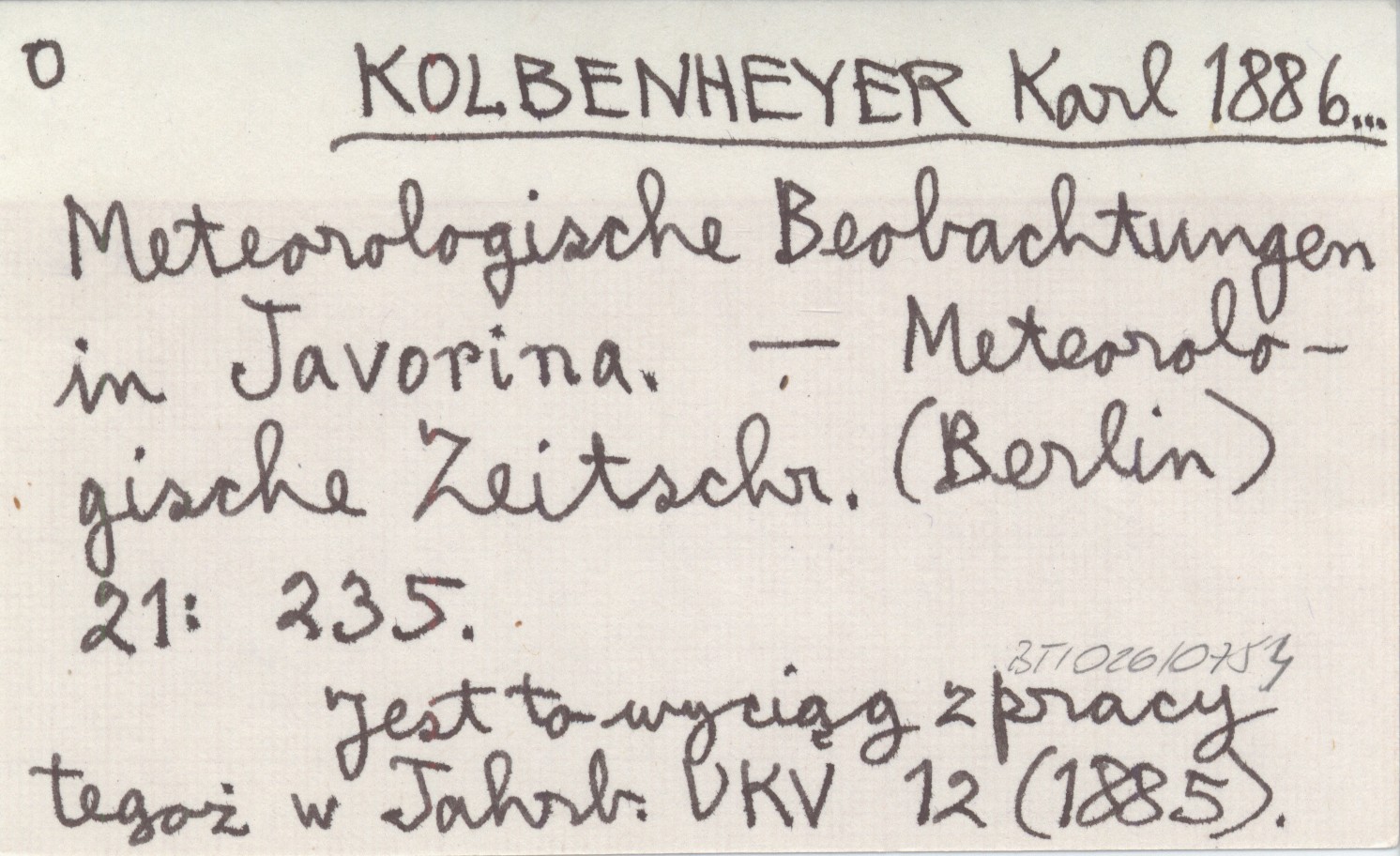 KOLBENHEYER Karl 1886... Meteorologische Beobachtungen in Javorina.