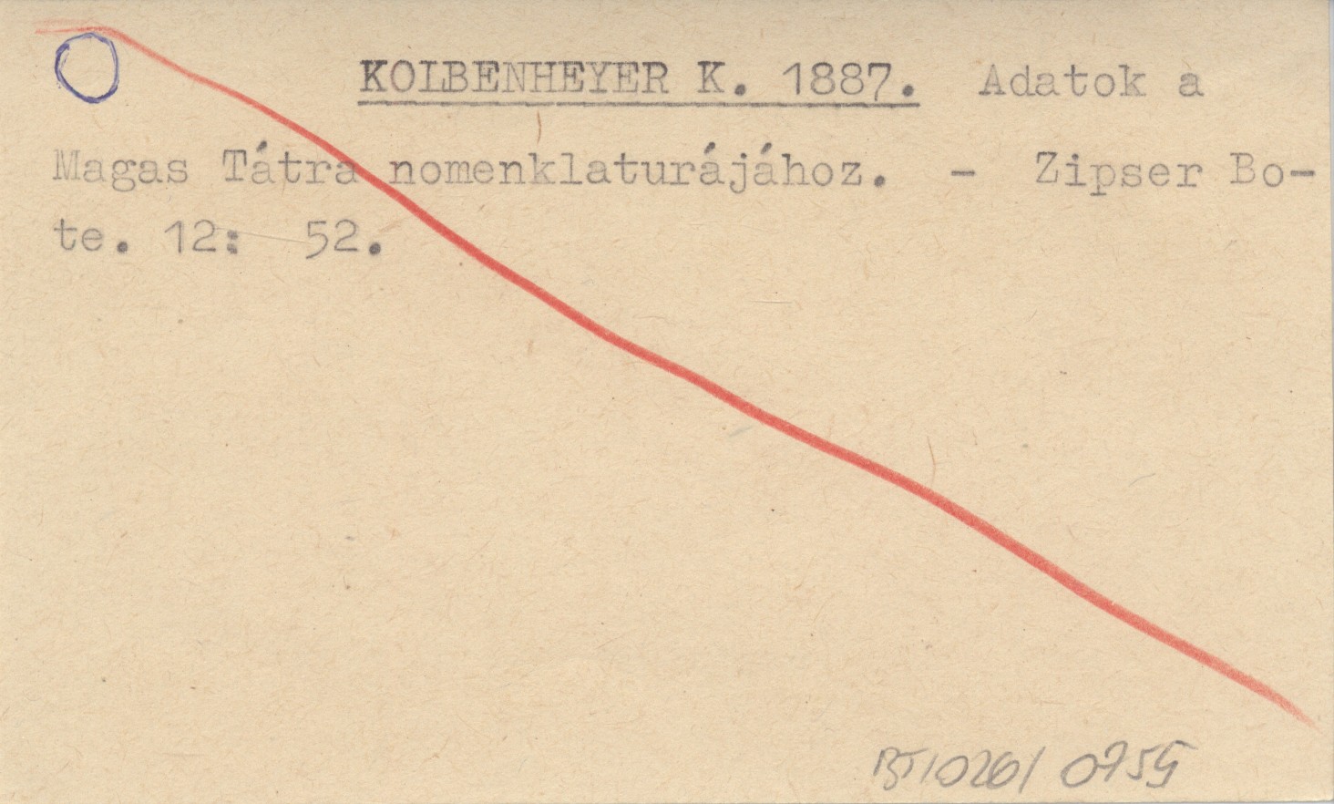 KOLBENHEYER K. 1887 Adatok a Magas Tátra nomenklaturájához.