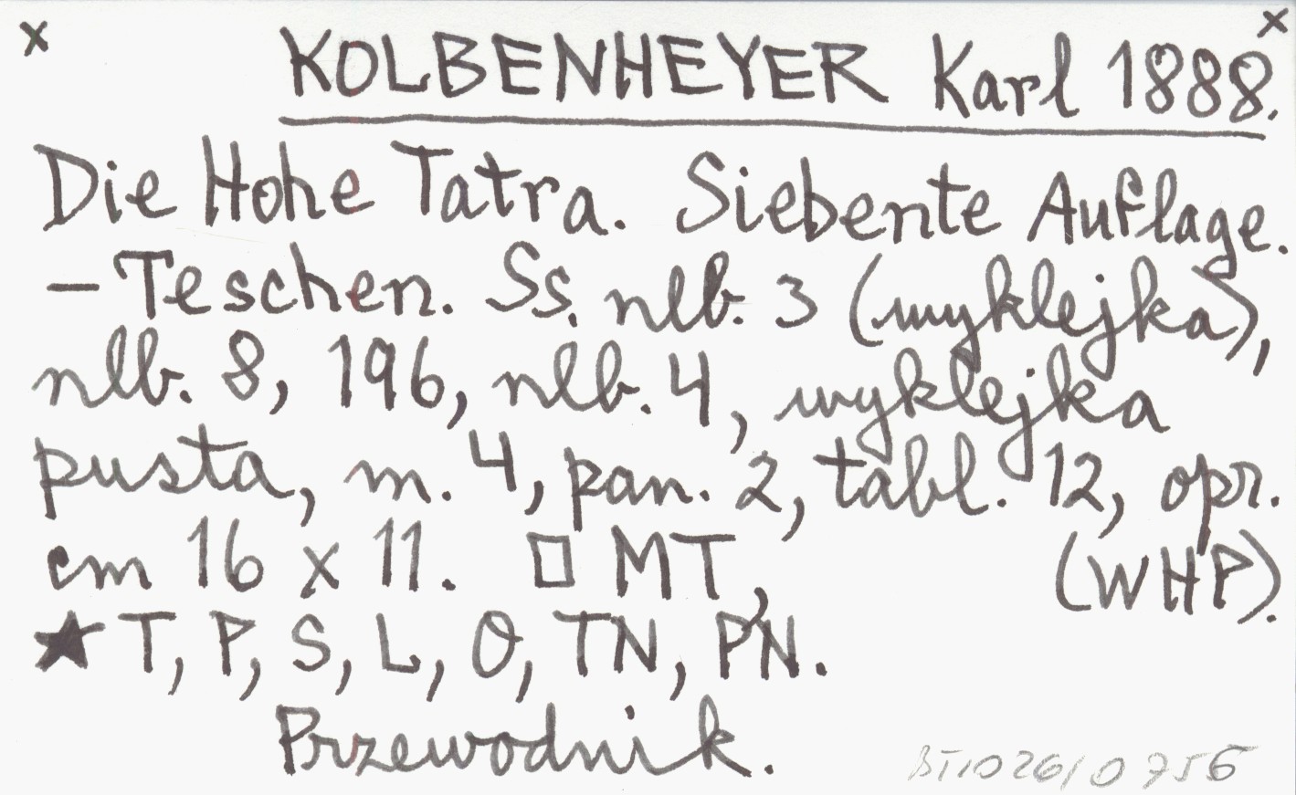 KOLBENHEYER Karl 1888 Die Hohe Tatra. Siebente Auflage.