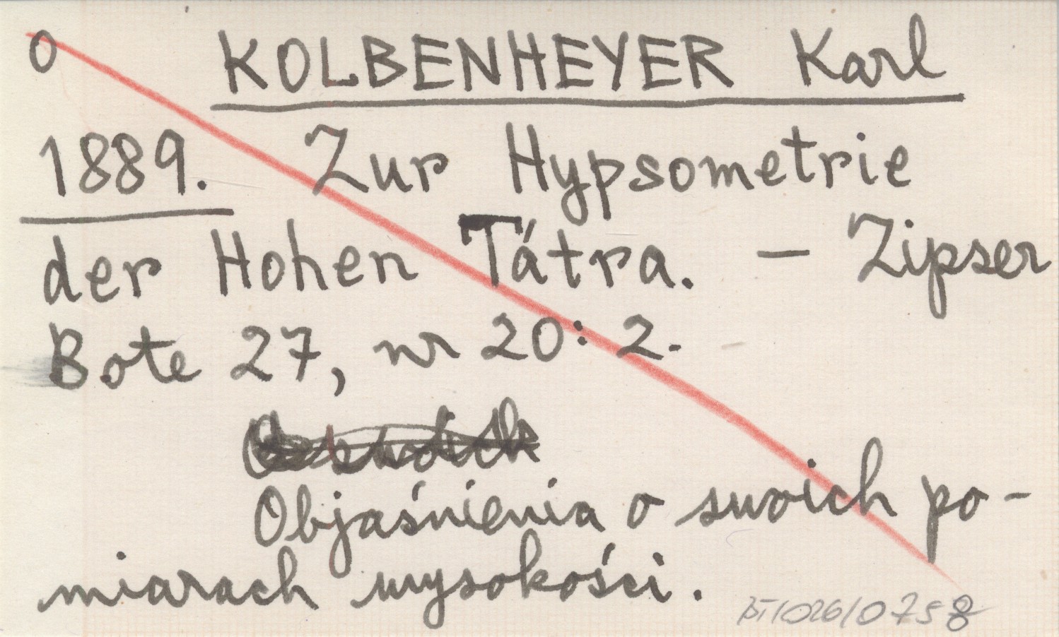 KOLBENHEYER Karl 1889 Zur Hypsometrie der Hohen Tátra.