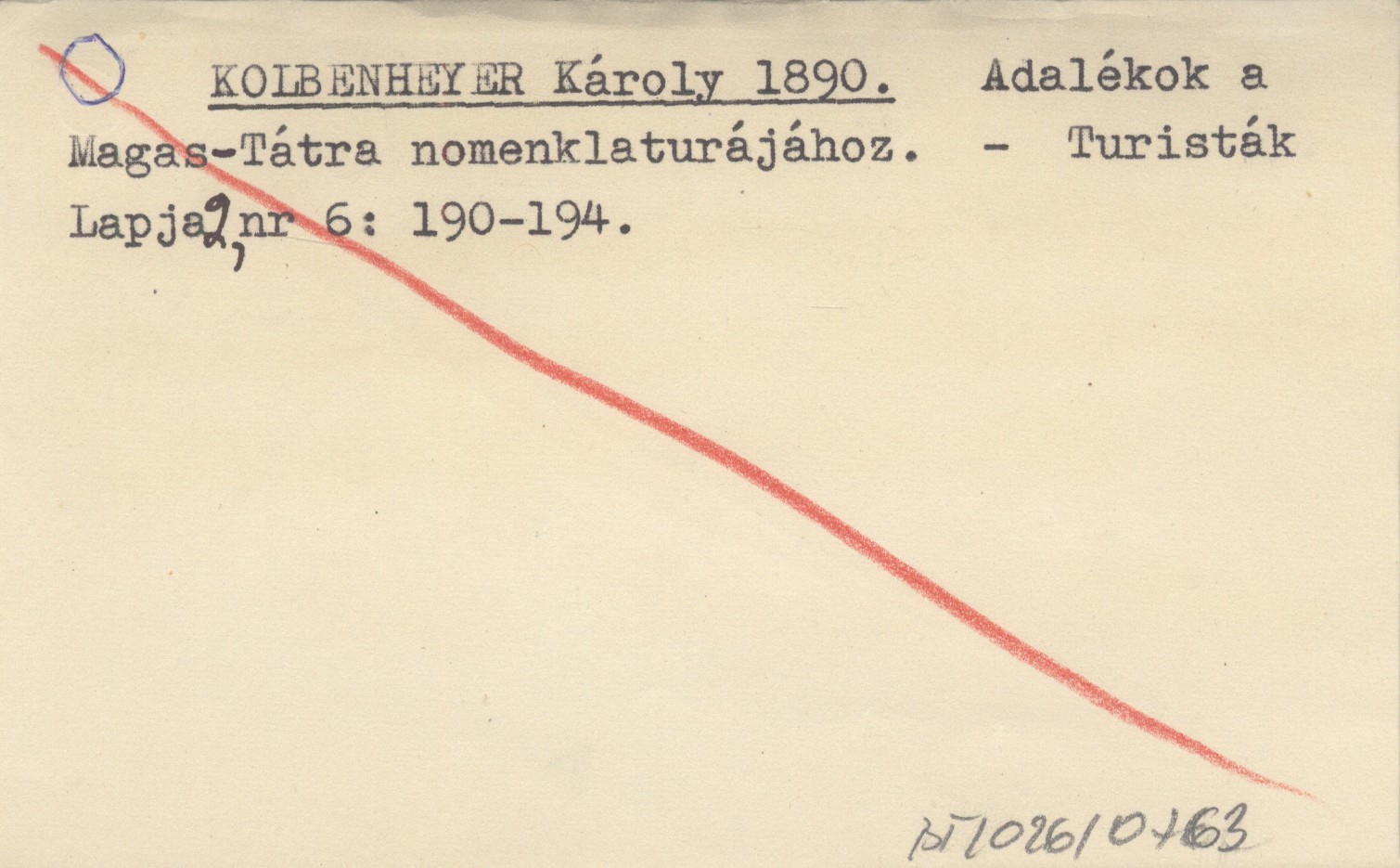 KOLBENHEYER Károly 1890 Adalékok a Magas-Tátra nomenklaturájához.