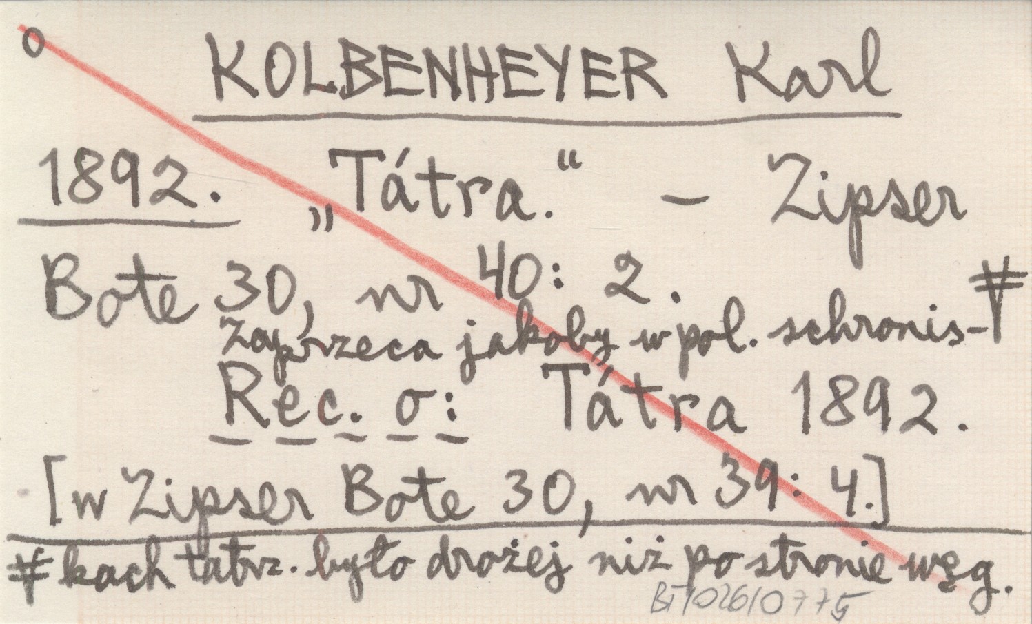 Zipser Bote, 30, nr 40: 2. Zaprzeca jakoby w pol. schroniskach tatrz. było drożej niż po stronie węg. REC: Tátra 1892 [w Zipser Bote 30, nr 39: 4.]