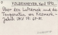 KOLBENHEYER Karl 1892... Über den Luftdruck und die Temperatur von Kesmark.
