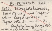 KOLBENHEYER Karl 1893 Tátragürtelstrasse, Touristenweg und Ungarischer Karpathenverein.