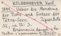 KOLBENHEYER Karl 1894 Ueber die Abnahme der Tiefe und Grösse der Tátra-Seen.